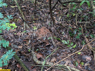 After about 2kms and a meadow of the manja koova aka arrowroot (not kasthuri manjal), we reach a big rock with fresh aana pindam (elephant poop) which is our first rest point. From here begins a steep incline which guide chetan described as Malayattoor-like and he gave us some perfect sticks, so we knew shit’s about to get serious. This was probably the hardest part of the trek, but looking back I want to say it wasn't that difficult idk why.